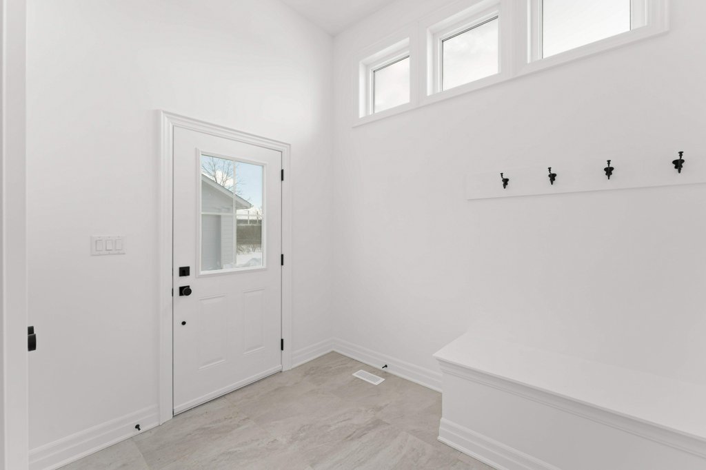 - Insulated steel front entry door including deadbolt and weather stripping.